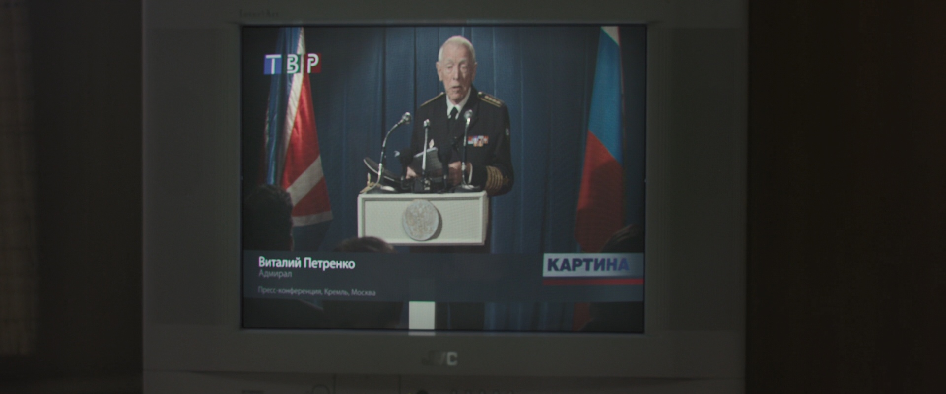 С ним не соглашается адмирал Петренко, который в эфире новостной передачи «КАРТИНА» канала ТВР объявляет о гибели «Курска» и обвиняет во всём зарубежных супостатов: дескать, катастрофа произошла по причине атаки натовской субмарины.