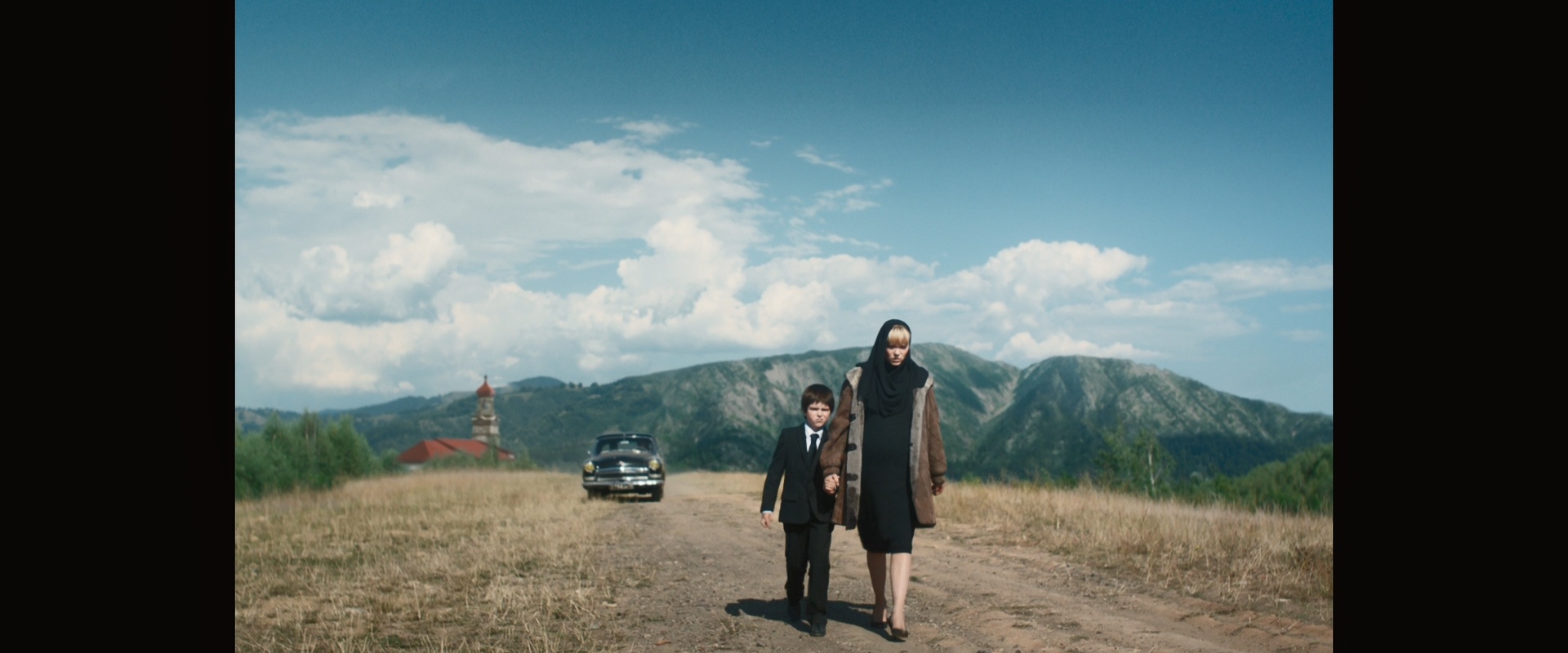 Таня берёт Мишу за руку и они уныло ковыляют прочь от церкви. Но внезапно их нагоняет чёрная 21-ая Волга с чёрными номерами российской армии. Ин Рашин Арми машины в строю по пол века!