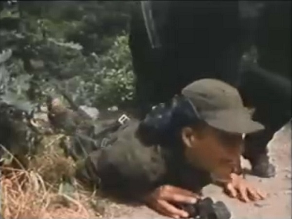 Все устремляются в погоню за немкой, но натыкаются на наших двух бойцов. И в итоге ниндзя и Эдди долго палили друг в друга и в белый свет, сидя в кустах, из пистолетов с бесконечным боезапасом, как во второсортном шутере.