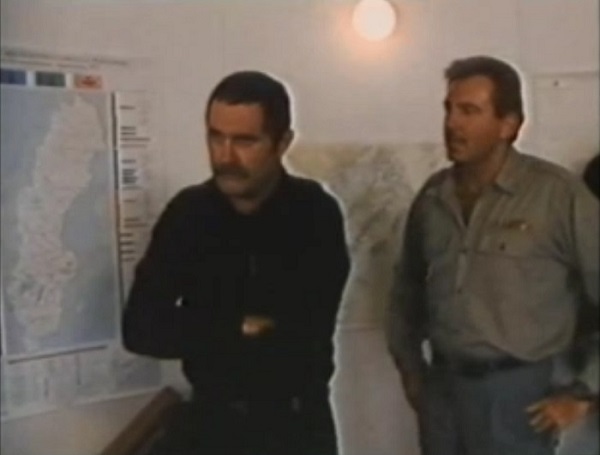 Итак, начало. После бесстыже затянутого вступления с какими-то аквалангистами мы видим пейзаж пляжа. "Где-то в Северной Европе" нагло говорит фильм. Видимо, это какая-то вымышленная база НАТО, потому что на ней служат американские военные с американскими именами и английскими надписями - хотя фильм вроде как шведский. Продуманность, как видите, на высоте. Итак, на острове военная база, поэтому пляж охраняет бородатый пограничник с автоматом. Заметив некое движение в волнах, он отважно передергивает затвор у своего ствола - но благодаря волшебному монтажу движение пропало... Вроде все тихо...