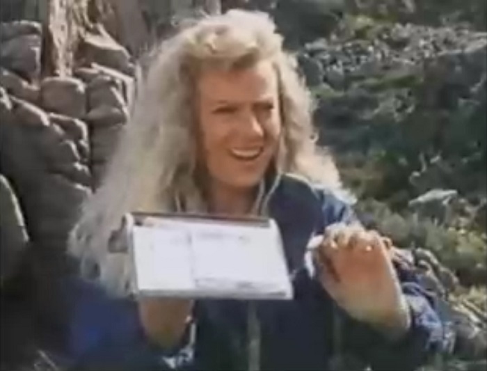 По пути Эдди вступает с блондой в разговор. Диалох: "А что если бы вы поймали меня на острове?" "